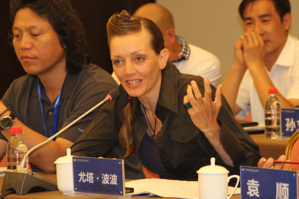 德國藝術家尤塔·波波說自己很小的時候曾接觸過一些關于中國古山水畫的畫冊,來北京之后,她去了一位中國書法家工作室,她覺得這是中國抽象藝術的起點。她還指出紅旗渠精神非常感人,應該把它介紹給外國的人們。她認為這就是中國的“中國夢”,應把它傳播給全世界。