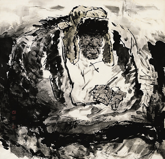 中國自改革開放以后,世界藝術思潮紛紛涌入,表現主義的繪畫手法深深地吸引了他,方增先開始醞釀新的探索。1983年,方增先去了青海藏族地區之后,他被當地藏民的生活所深深感動,如何將一種沉厚、粗獷和磐石般的藏民身軀移入筆墨的表現之中的問題不斷在他腦中思索著,“積墨法”帶著高原的氣息呼之而出?!胺e墨”所產生的斑斑駁駁的肌理效果,給人感覺凝重而沉郁,帶有歲月的滄桑和苦澀之味。從鄉村走出來的畫家方增先認為,這恰好可以表現自己內心一直所敬重的對象——那些質樸的農民和牧民們,他們是歷史與生活的創造者。在他創作的《絨帽老人》、《閑看行路人》、《家鄉板凳龍》等作品中,“積墨法”顯然得到了非常成熟的運用。近年來,“積墨法”已成為方增先人物畫創作的重要方式之一。