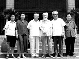 左起:黃胄 陳大羽 葉淺予 陳秋草 謝稚柳 俞致貞等集體照于北京 1981年7月