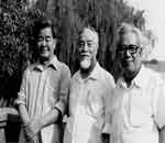 左起:黃胄 謝稚柳 陳大羽 1981年于上海 黑白
