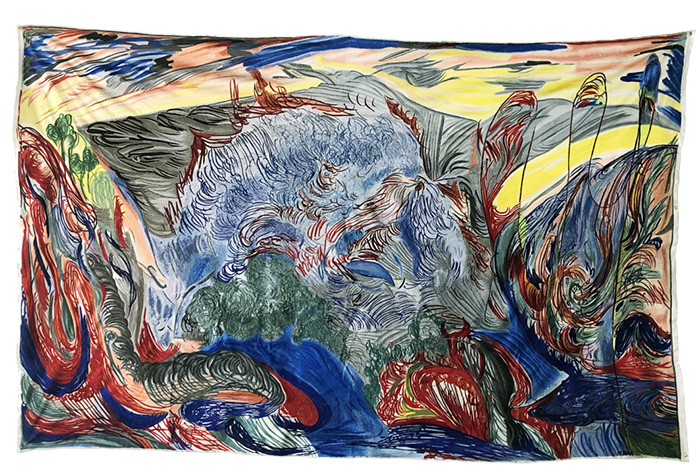 在于航具有狄奧尼索斯精神的奔放繪畫中,與亨利·柏格森對于直覺、生命沖動以及時間綿延的肯定遙相呼應。于艾君作為一位跨界多種繪畫媒介以及文字創作的畫家,大膽突破了有關架上繪畫的刻板程序和繪畫介質,創造了融刺繡與自由涂繪為一體的驚艷的風格,完成了個人創作的再次蛻變。