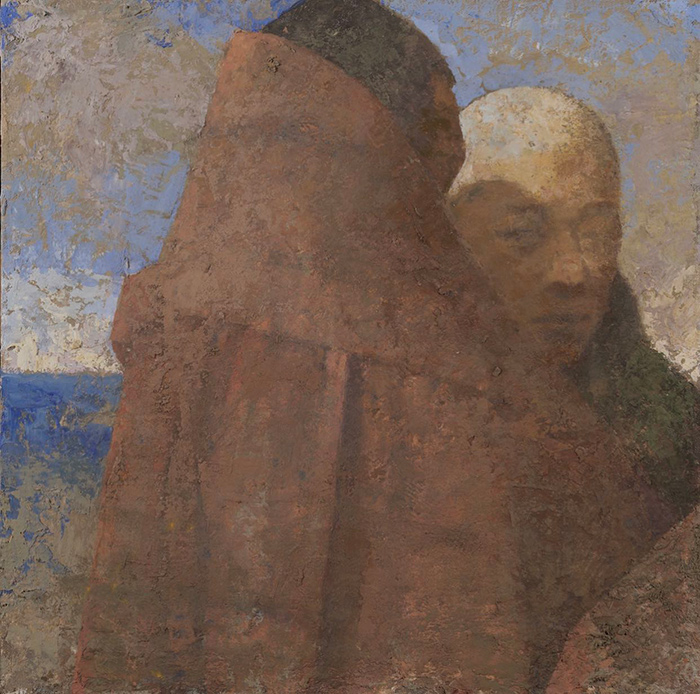李曉剛-《兩個僧侶》-40x40cm--酪素坦培拉--2022年