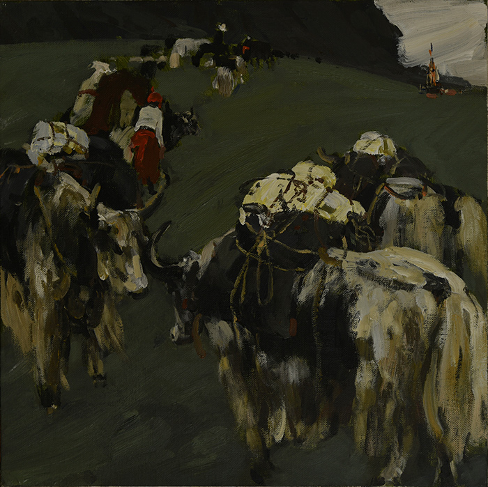 張文平同志本人就是甘肅人和甘肅畫家,他在我們高研班時已經帶同班友人多次前往甘南、那時的作品即已得獎,后來他的工作單位調離到廣西,從此又建立了三地畫家之間的聯系。喻昌農同志在這個隊伍中是新來的高手,他早期遠赴俄羅斯進入圣彼得堡列賓美術學院讀完了從本科到研究生的全程,師從名教授梅爾尼科夫畫室,在2010年以油畫創作第一名畢業(作品是以西藏習俗《天葬》為題),隨后又在我院高研班畢業。喻昌農同志在藝術教學的師座和重新加深油畫創作系列所表現的就是對甘南遠山與厚土的反復回響!