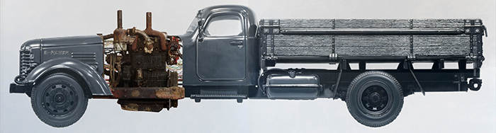 《模型·1/20×20·東風金龍》 Model·1/20×20·Dongfeng Golden Dragon 布面油畫 Oil on canvas 200×200cm 2010年