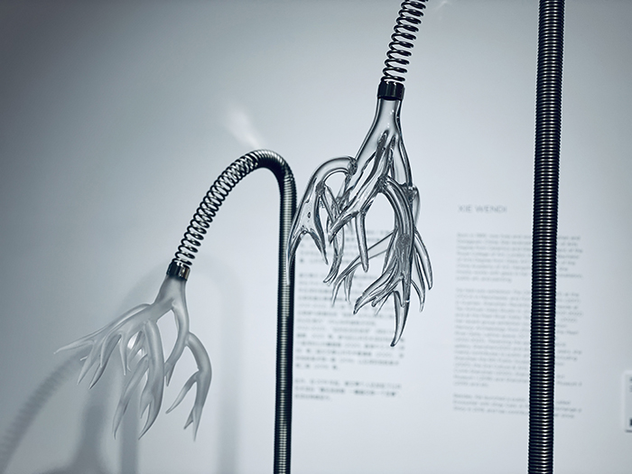 《我的花還沒有名字》 謝文蒂 吹制玻璃、金屬彈簧、鏡面不銹鋼 2022