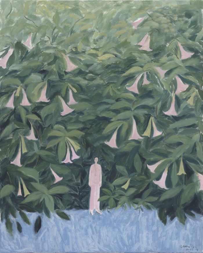 在近期的人像作品中,鹵貓試圖去捕捉人與世界的抽離狀態。這是他有時想要與世界保持的關系——站在外面去觀察與記錄。正如展覽主題作品《沒有窗戶的房間》,實際上他的窗外沒有玉蘭,但在同?個季節里游走巴黎、倫敦、上海的街頭,他總能看到正在盛開的玉蘭花。玉蘭代表了“窗外”的相同與不同。抽身風景之外,透過畫也可以抵達任何想要看到的景色,不論是真實的,還是內心的。
