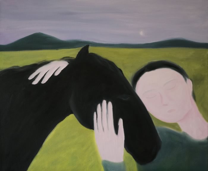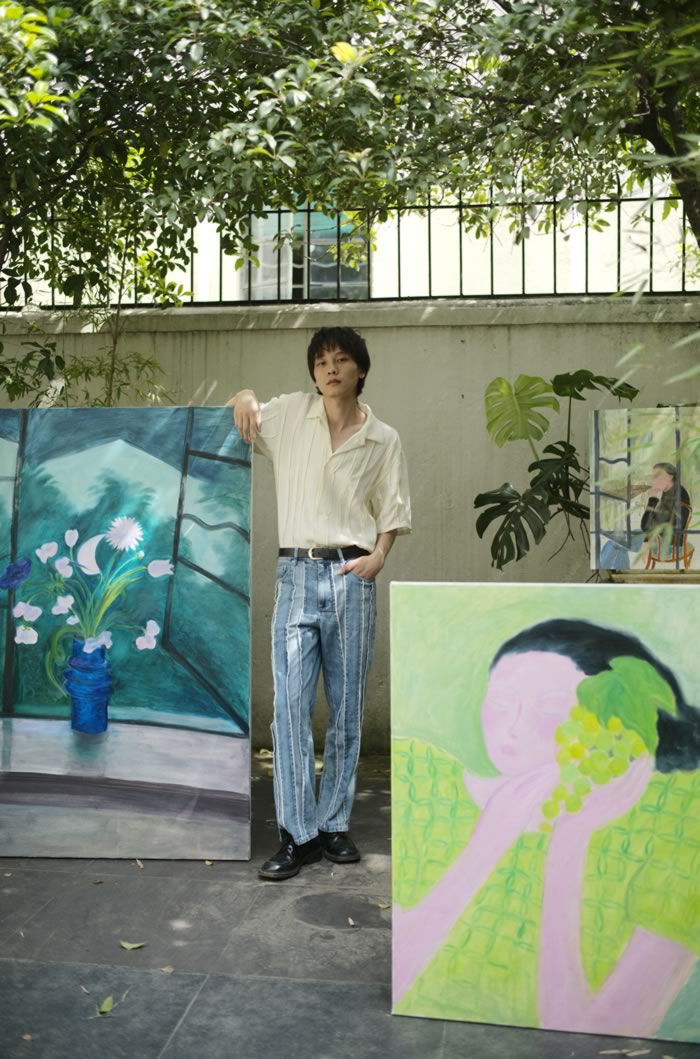 “這幅畫是確定了展覽的主題之后為展覽畫的。我總想象著抽離自身從另?個視角看著自己,而繪畫就是最好的方式?!?/p>