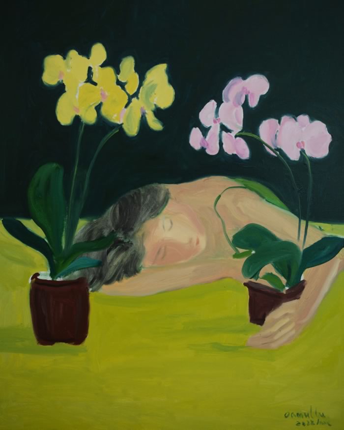 《蘭花下的休憩》布面油畫 70x90cm 2022