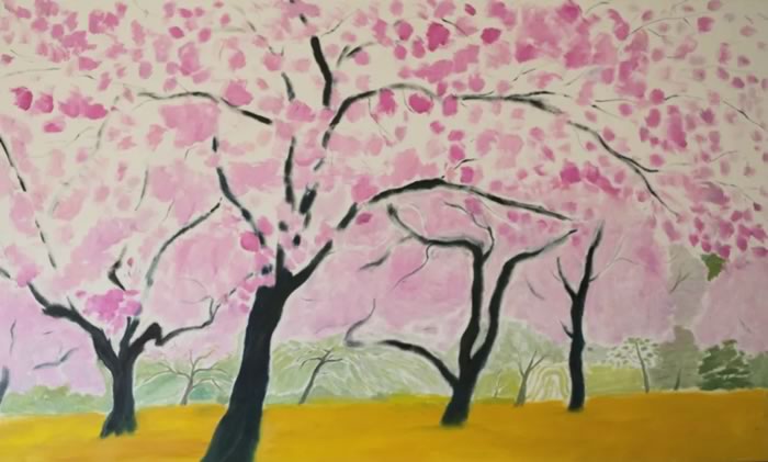 這兩年雖然出行限制,但他描繪的自然風景更加引人入勝。他的這類作品有很強烈的景深,一層林或一片花海,仿佛抬步可入。