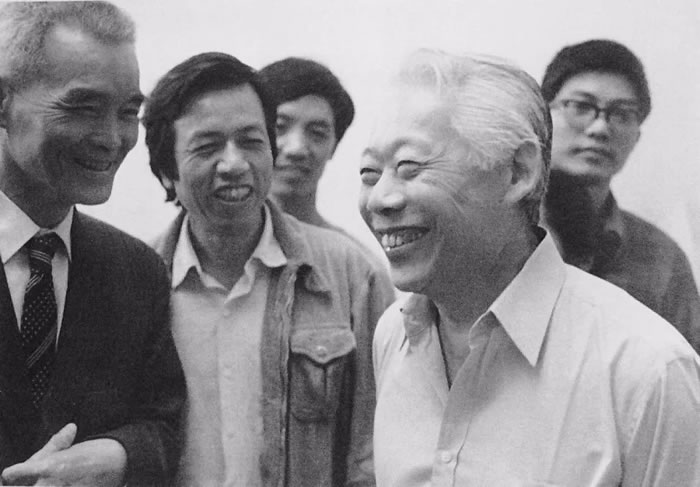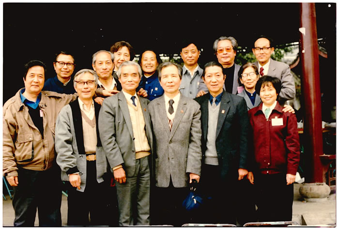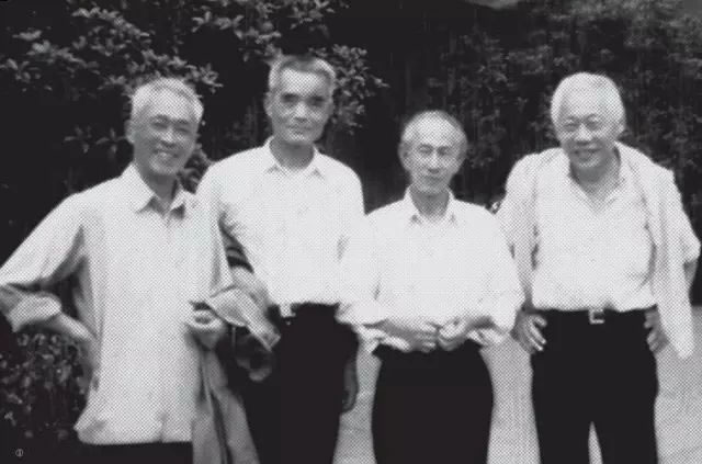 1985年春趙無極回杭州母校舉辦油畫講學班時合影 左起丁天缺、尚揚、孫建平、趙無極、許江