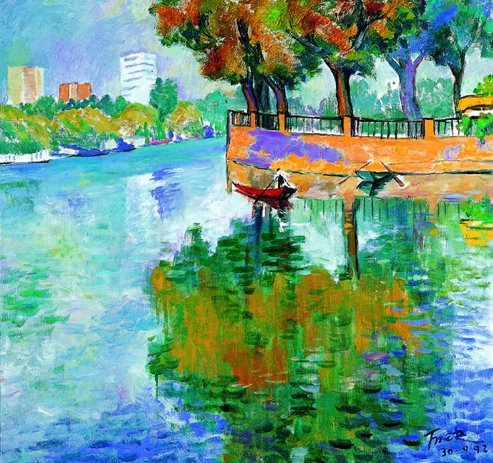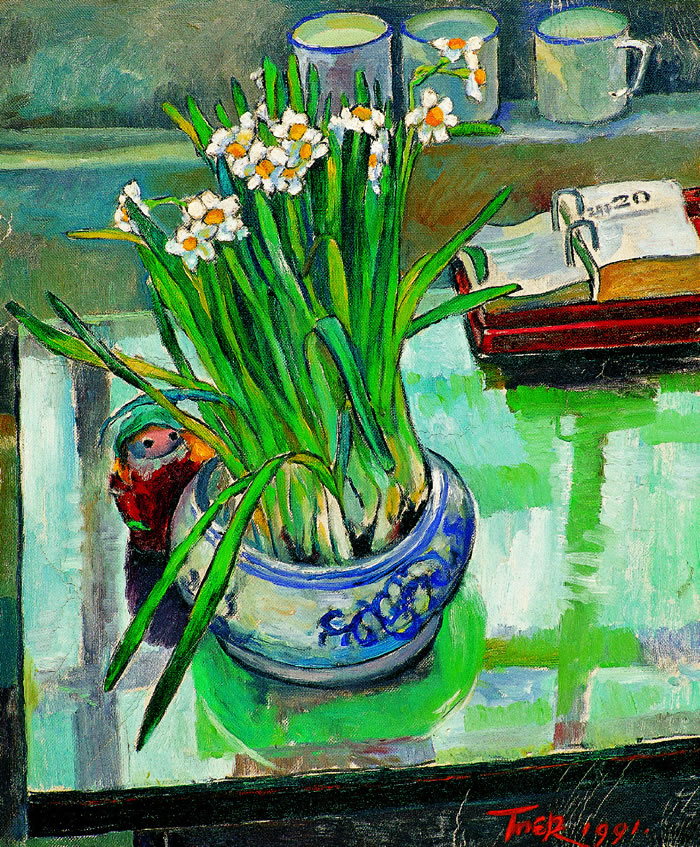 It is worth noting that, although the art of the Second Generation has developed in different directions, the roots and influences of the academic school constitute common echoes in their artistic creations. These include the generalization of the structure of time and space, the lyricism of the spiritual world, and the writing of Chinese imagery. However, among the artists from the Second Generation, each of them shaped and explored their own stylized artistic path. From the images that we have left of Ding Tianque’s works from the 1940s, but also his art spanning the 1980s and 1990s, the sensitivity and creation of formal expression were always present in his artistic practice. The still-lives, portraits and landscapes that Ding provide a variety of signs of exploration, variation and reconstruction. The related artistic creations reflect the intercommunication and coordination of traditional integrity and language innovation in terms of spatial composition, color expression and image meaning-making. Once again, this evidences the dialectical understanding and penetration of the ‘new’ into artistic creation, extracting novel elements of innovative exploration from the depths of tradition, highlighting the ‘Chinese tense’ of modern art in the context of international dialogue, thus endowing Ding Tianque’s artistic and academic character. His painting style is innovative and unique, and his personality frank and original, which complements well the creativity of the Second Generation. With these, Ding became a vivid epitome of the era of modern Chinese painting in the 20th century.
