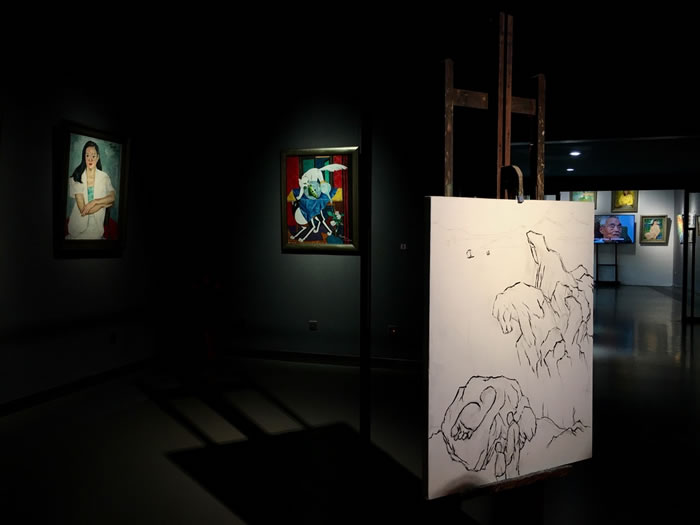 2018年丁天缺個展,丁老生前所用畫架與未完成的畫