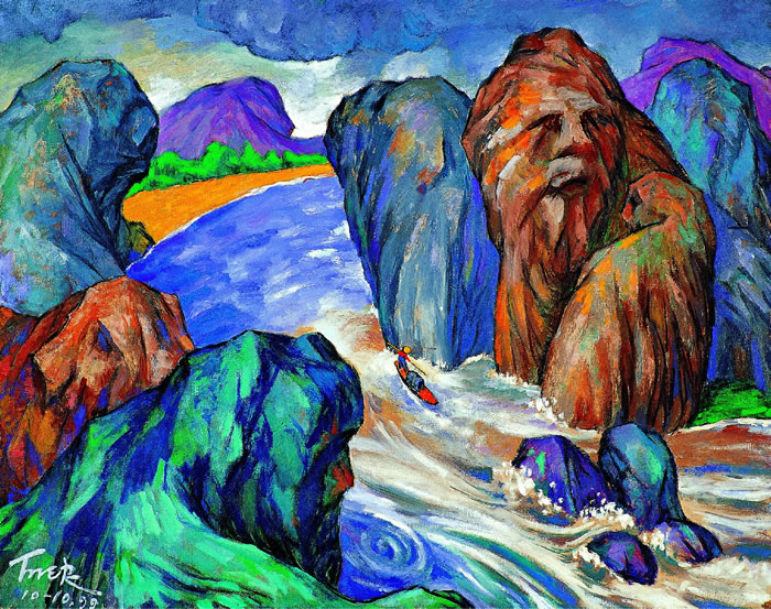 然而,對于國立藝專第二代的認知,實質上是“遲到”的發現。其中初始的引發點,是20世紀80年代本土現代藝術歷史的關注。包括趙無極、朱德群等在內的海外軍團。隨之對應著那段風雨兼程的文脈歷史,逐漸再度認知他們的師長林風眠、吳大羽、蔡威廉、方干民等諸多先賢的作為;也逐漸還原著吳冠中、閔希文、張功慤、丁天缺等諸多弟子的史實,他們含帶各自的歷史遮蔽,進入我們后學研究的視野。在還原與認知的過程中,我們不禁感佩他們在人生的磨難中不息保存藝術意志的堅韌,感佩他們與世界對話的藝術語言的前沿實驗特質。其中丁天缺不失為一種特殊的呈現?!还軞v史存有多少曲折與磨難,只要存有覺醒者所謂“懷有同樣潔愿的人,無別離”的心智,就有高度和光芒的格局,就有再生和共享的未來。