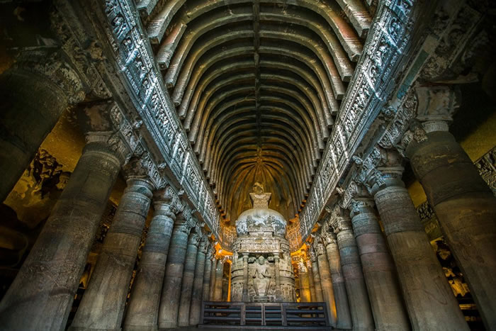 印度-阿旃陀石窟第20窟內景-公元6-7世紀
