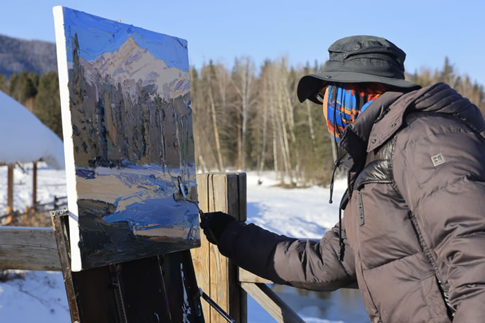 袁元寫生照,2023年4月7日 / 地點:禾木橋 / 攝影:范佳