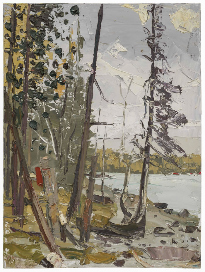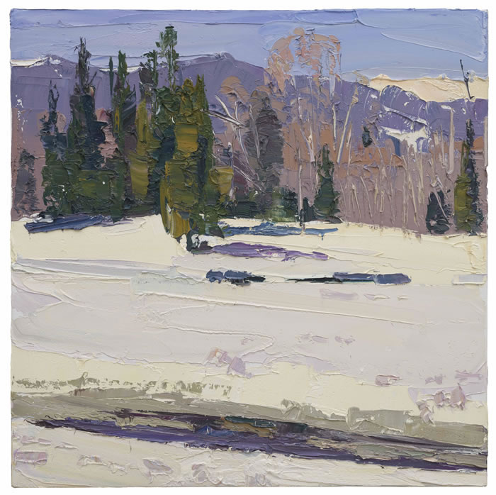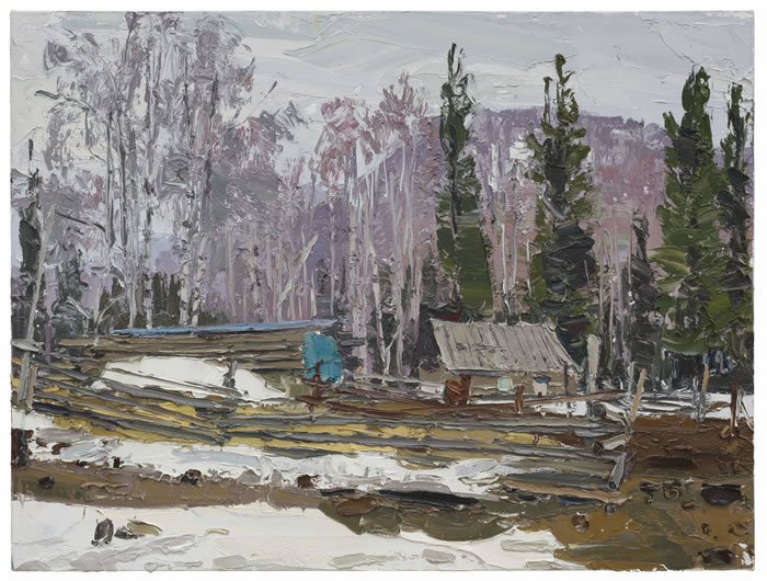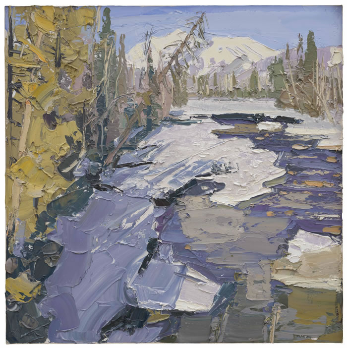 不妨想象一下,長久的畫室勞作對藝術家近距離凝視所形成的某種視覺壓迫。袁元正是從這里生發出擺脫城市視覺圍城的渴望,他出走城市,到陌生的可任意遠眺的地方,去自由伸展他的視距、調節已經凝滯了的瞳孔。在這些遠景中,他在那些被稱為風景畫的畫作上留下了他觀看的痕跡——聚焦于中、遠景,力求看得清晰和分明,漠視那些近景之物的干擾。在這些色彩大關系中,他的視覺神經極其敏銳,尤其是遠處冰雪反射的天光及叢林,是冷中微暖的一絲生命的懸浮。其精彩也便在看似簡略的刀筆下某種色調微差所形成的比對或呼應,人們能夠從中感受到畫家恣意而嚴謹的形色呼吸。