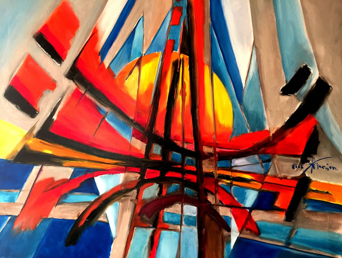 弗朗西斯·德·朗洛(Francis de lenclos)Red Pagode in the sun在陽光下紅寶塔2016-120x 100cm布面油畫