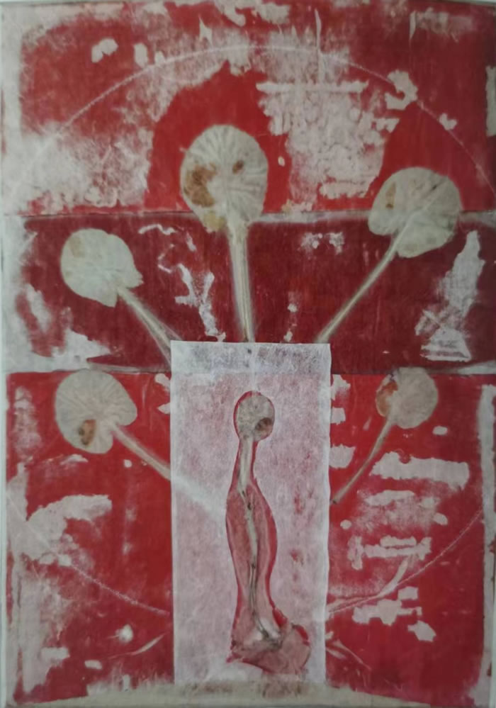 一切都有觀眾來解讀藝術家想要通過紅色來傳達什么。對一些人來說,它們可能暗示著幸福,對另一些人來說,可能是戲劇描述性的等等。例如,我們知道羅馬人和基督徒崇拜公雞的紅色冠飾。他們認為它們是勇氣、光榮和勝利的象征。觀眾會注意到展覽中有三只公雞(朱春林、景濤和文德的三件藝術作品形成的一場對話)。