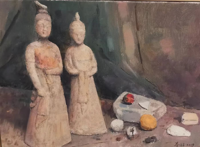 朱春林 雙俑 30x40cm 布面油畫 2019