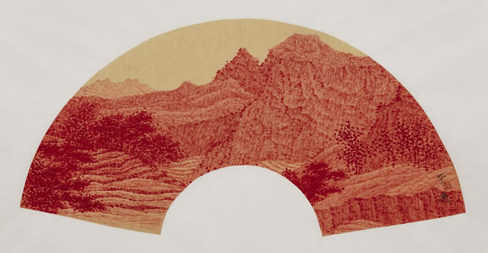 于躍 朱色山水之二 紙本設色 166X23.5cm 2018