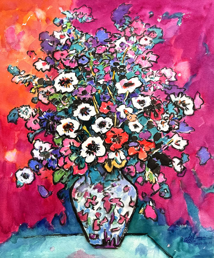 期待大家在我用心營造的花海中,能感受到我心靈深處對花兒的詮釋和我在畫花兒時愉悅的心情,以及我在享受畫花兒過程中的松弛和肆意。