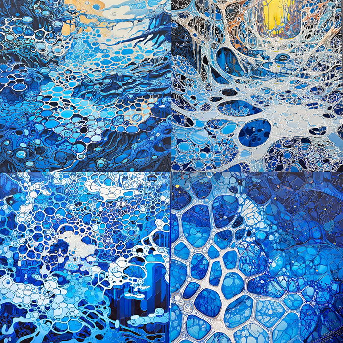 林苒《覓園山水·新桃花源記》布面綜合材料、油性顏料、水性顏料、熒光顏料、礦物質顏料 100x100cmx4 2023-2024