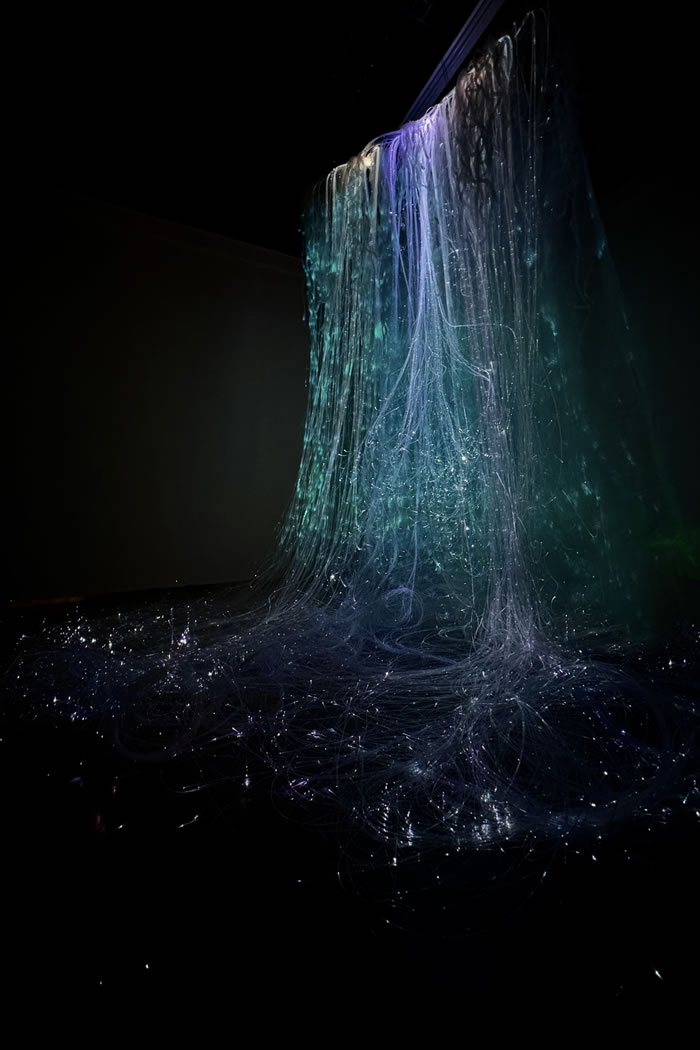趙萱《流動》 裝置 光纖材料、金屬板 200×250×200cm 2024 方案由0.1LAB 新媒體藝術工作室提供