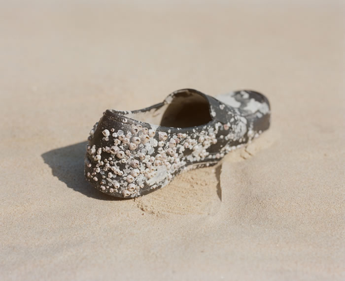 嚴佳林《?只長蔓藤壺的廢棄?鞋_岸上的沖浪板》攝影 40cm×34cm _ 40cm×34cm 選?《美夢的縫隙》 2022-2023