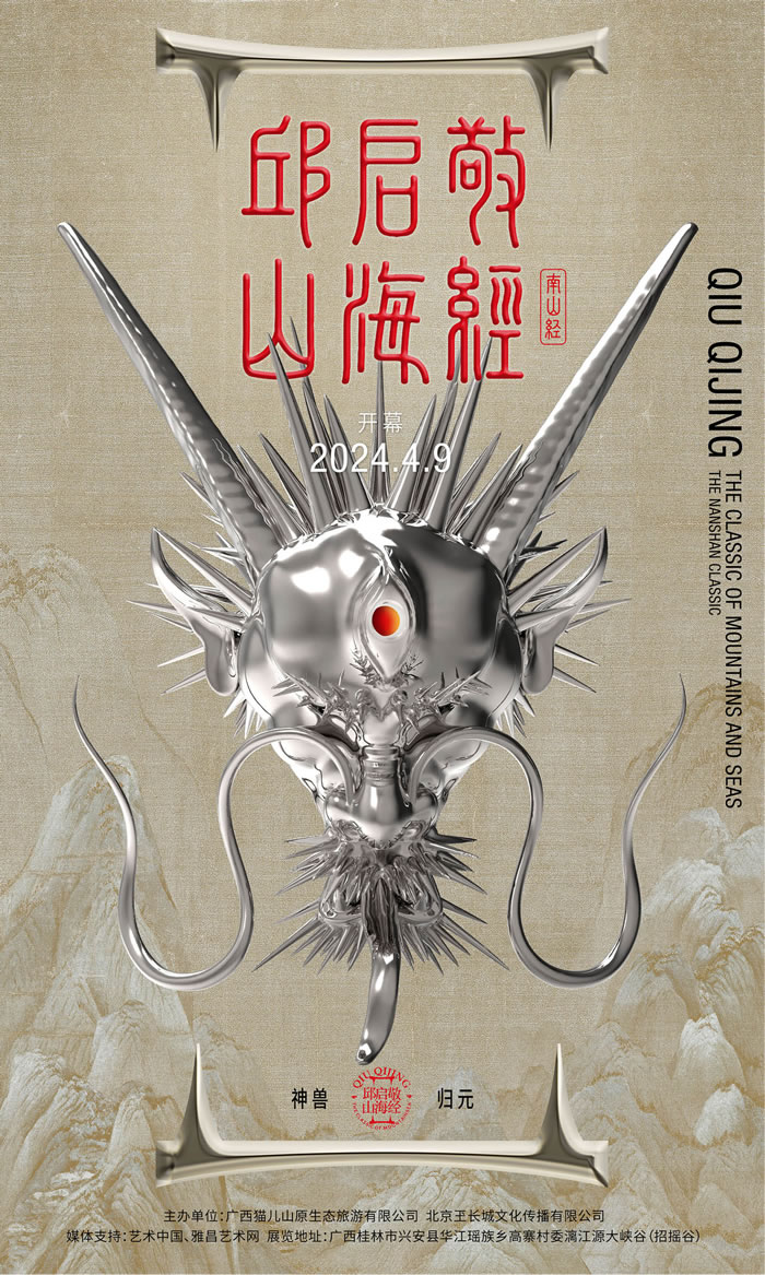 2024年4月9日,山花海樹神獸歸元——邱啟敬“山海經”大型公共藝術巡展首站將于廣西桂林貓兒山正式開幕。這是邱啟敬“山海經古地圖”系列之“南山經”大型公共藝術巡展的首站。