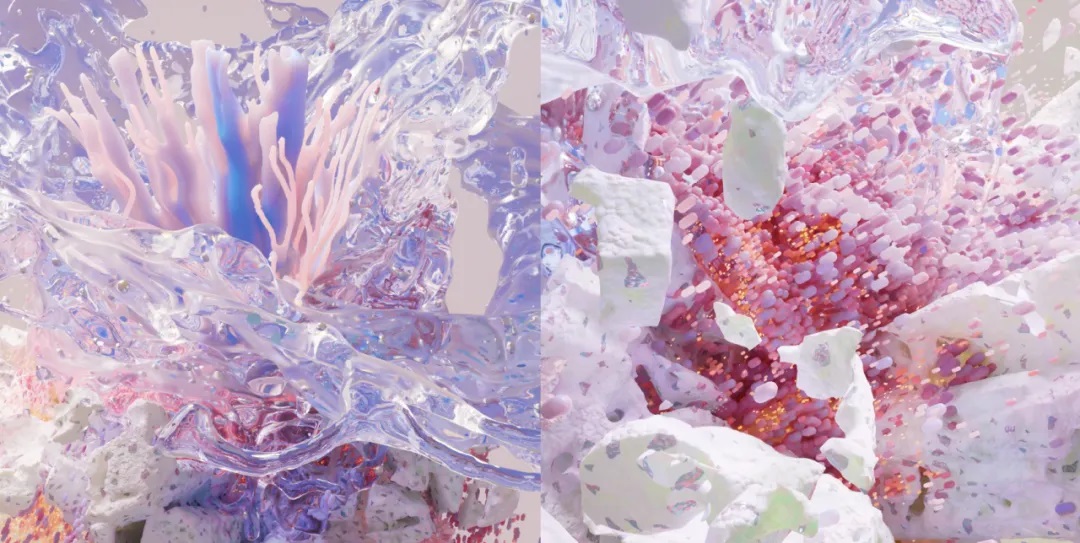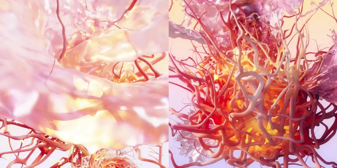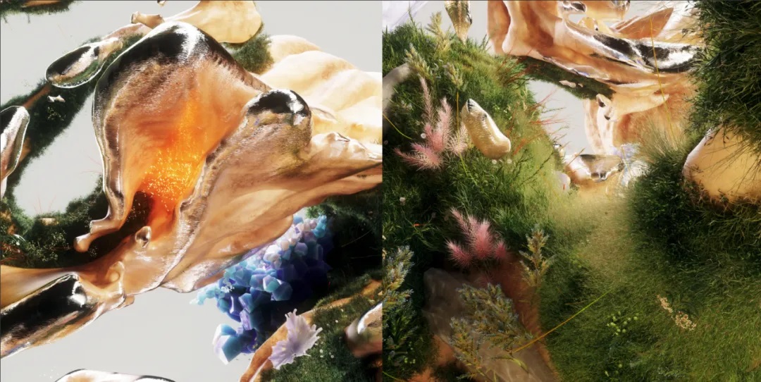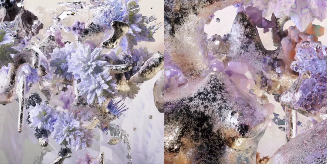 “生命花園”的藝術項目靈感來源于對“元宇宙”概念的討論。費俊對元宇宙的理解并非簡單地將現實世界數字化并搬移到虛擬空間,而是構想一個生命豐富、禮贊多樣性的世界。借鑒古老的智慧和哲學,以五種元素(金、木、水、火、土)的組合及其相生相克的關系構建每個生命個體,這便形成了“生命之花”的數字化身。它們聚集在一起,每個個體都在不斷生長,仿佛是一個永生的生命世界,從微觀到宏觀,一個超越常規的藝術世界得以示現。