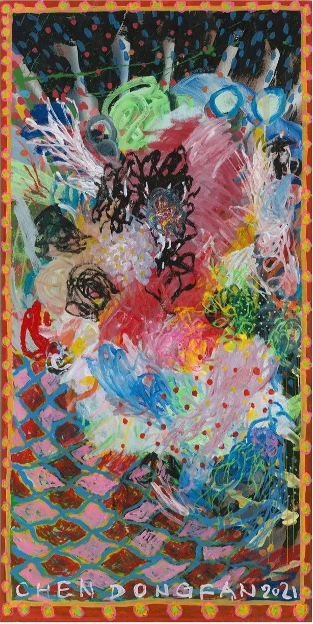 陳棟帆的創作一直關注力量的傾注與情感的節奏,其作品重視生命力的燃燒、轉化與其間詩意的流淌,探求繪畫之靈。觀者將穿行在一片片木板大幅繪畫的叢林中,意象和情感隨著筆觸與色彩肆意點染,一幀幀繪畫隨著移步換景而紛至沓來。這片繪畫的矩陣是生命不可言說之事的藝術轉化。