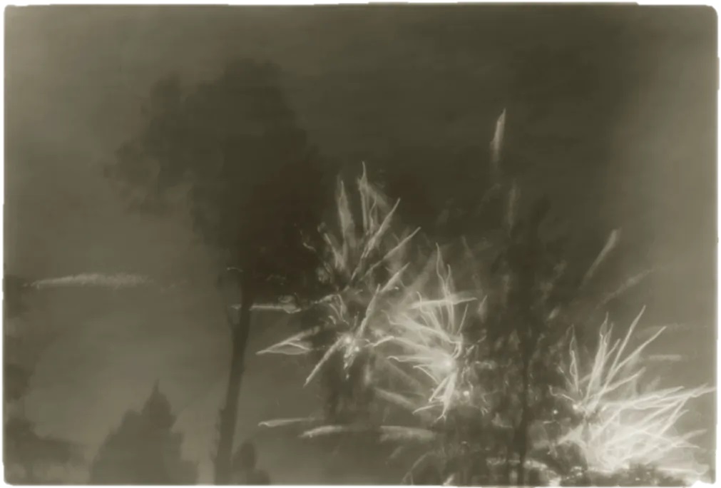 2012年,身處巍山古城的盧彥鵬與火把節的煙花相遇。他將鏡頭對準兩棵樹中間,向上與向下,重復兩個動作——拍煙花散開,以及拍它散落下來。作為工業革命產物的攝影術,此時形似一種祭祀的儀式,參與了這個古老節日的狂歡。昆蟲一樣的光被捕捉下來,節肢動物的觸角或脛節伸展在黑暗中……一次光的繁殖,證實了攝影成為一種偶然的神跡的可能。