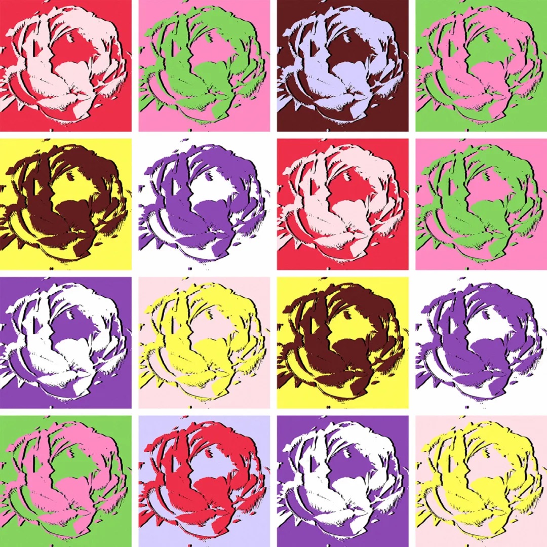 設計師朱凌志用波普藝術的形式將牡丹的九大色系還原,以無限循環和復制的方式,再現牡丹豐富的色彩。