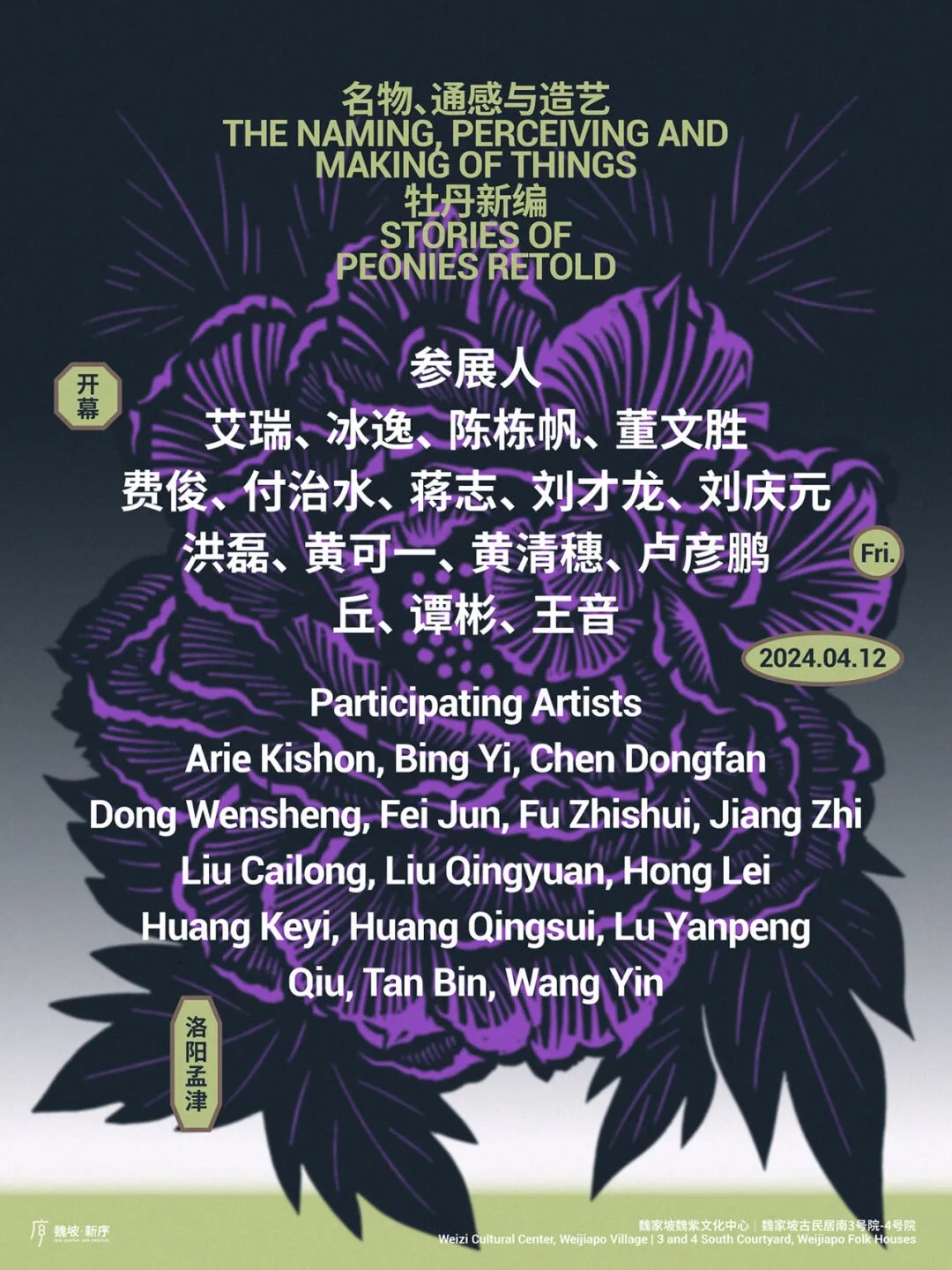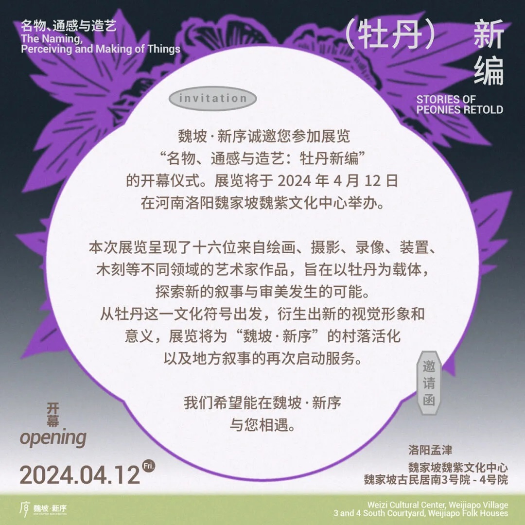 本次展覽嵌入了洛陽魏家坡村的清代古建筑群落之中,展覽材料包括繪畫、攝影、錄像、裝置、木刻、紋樣、器物、文獻等,希望從牡丹這一文化符號出發,提取具有代表性的圖像內容與文學精神,以可感的方式進行再編寫和展示,從而衍生出新的視覺形象和意義,為“魏坡·新序”的村落活化與更新工作以及地方敘事的重啟服務。