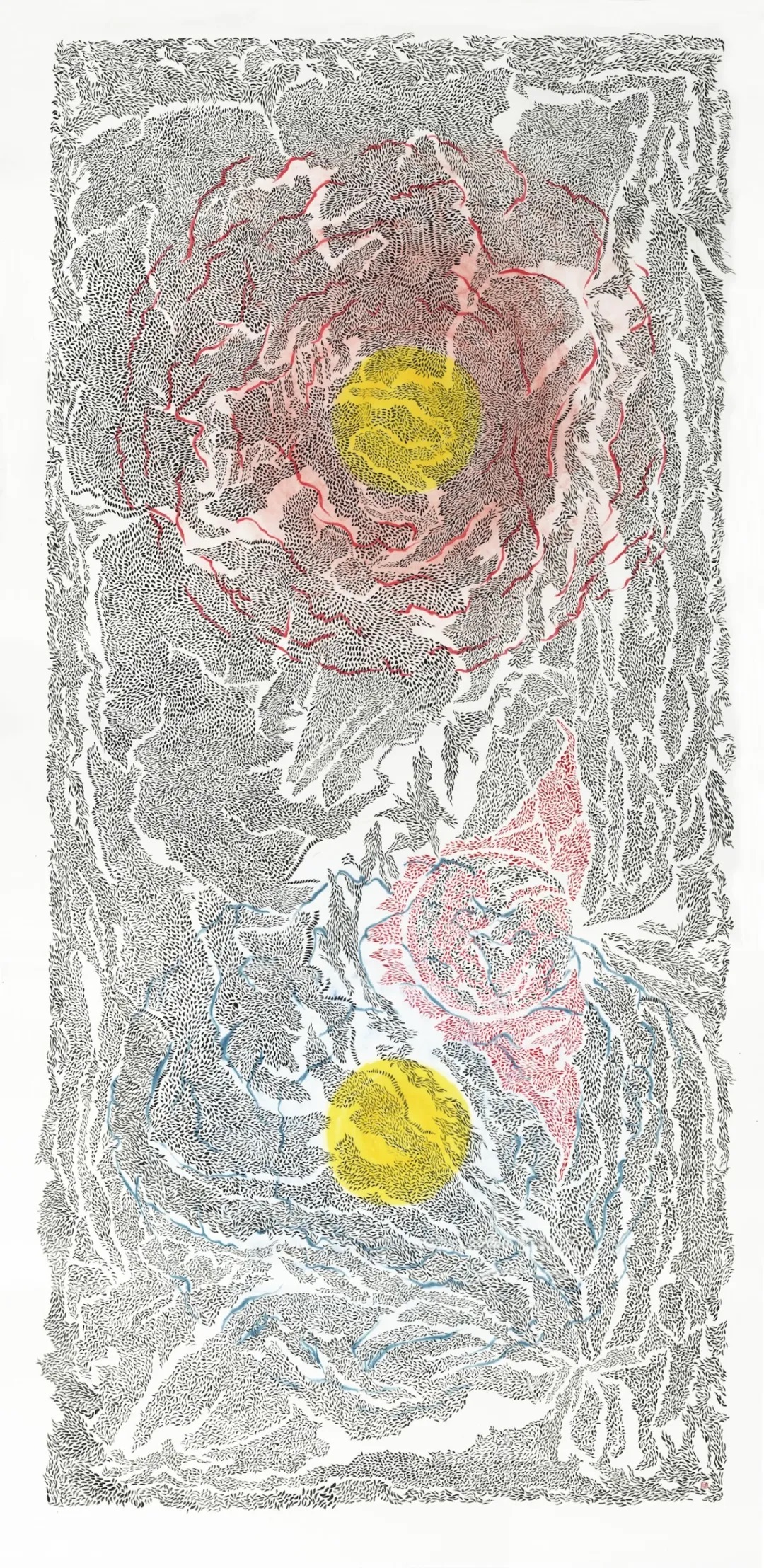 牡丹如何成為瀑布?在繪制壯美的植物時,冰逸創造出壯闊的山巒和流動的能量。她的筆觸述說自然的神奇和生命的律動。它帶來超越物質世界的內心共振。從溪山到萬花,山水承載了中國人的“萬物”精神:一切事物都互相轉化。一切瞬間皆為永恒時空。