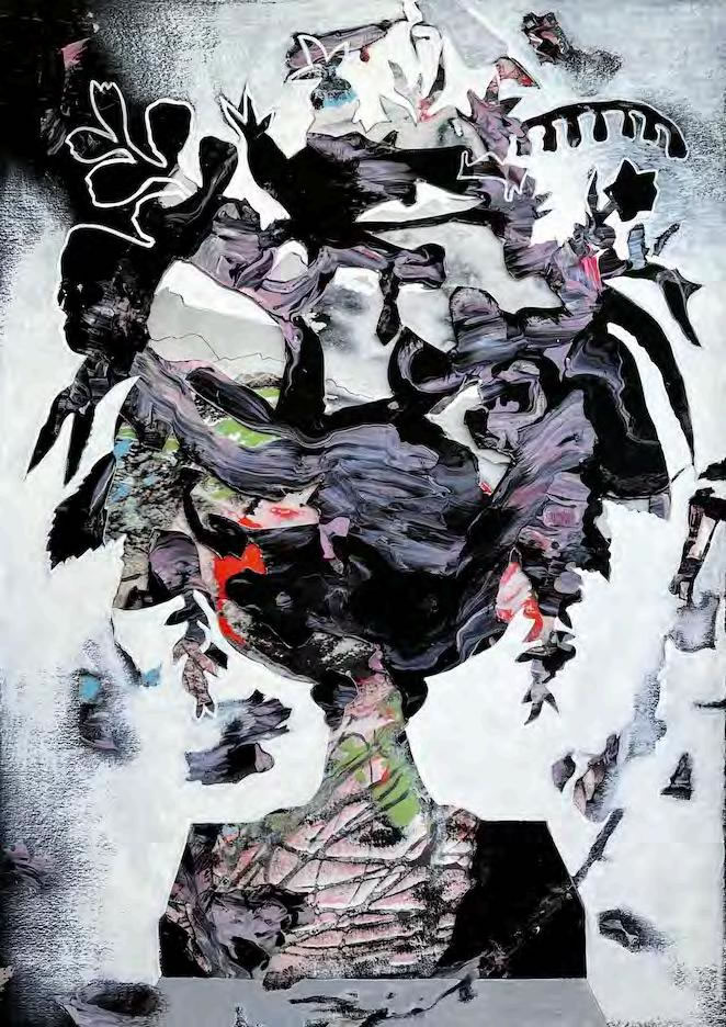因為花束作為一個概念是露茜安近期藝術作品的核心,所以她對花本身的引用完全在于將它們的輪廓表現為花瓶中的花束形式。這個輪廓結構中包含了對風景、女性和神話的具象或抽象描繪,這些都是她之前一些畫作的一部分。通過這種方式,每件作品都是將選定的花束與不同的底色通過繪畫完成的,因為它的歷史語境和可能性既反映了生活的不同時刻,又具有新的意義。然后,在這個輪廓結構的內部和外部以不同的方式使用油畫顏料來創作,將內部和外部統一在當下。