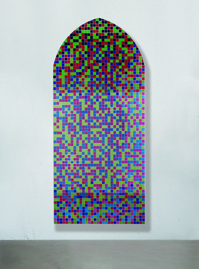 曾曦不只是一個材料型的藝術家,更不只是為了制造視覺效果,他所著重闡述的是是當代藝術的核心思考--觀看之道。曾曦的這些“二維裝置”作品是通過非常規的材料的使用更為極端的揭示出視覺觀看的問題。他不斷從藝術史中獲取創作的資源,除了那些帶有神性光輝的古典繪畫或中世紀教堂窗玻璃畫以外,他也從現代派藝術大師如羅斯科、豐塔納等那里吸收養料。這些資源和養料經過他的材質轉換,皆變成了對于藝術史的特殊回應和對于當下心理體驗的投射。