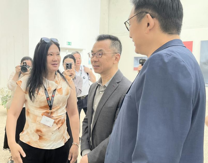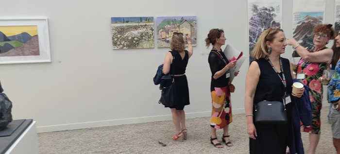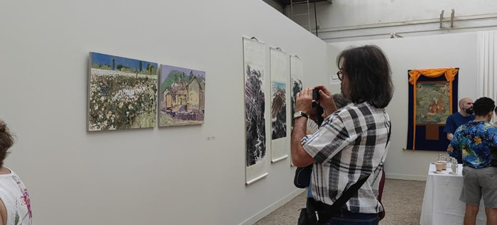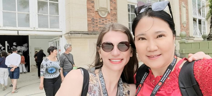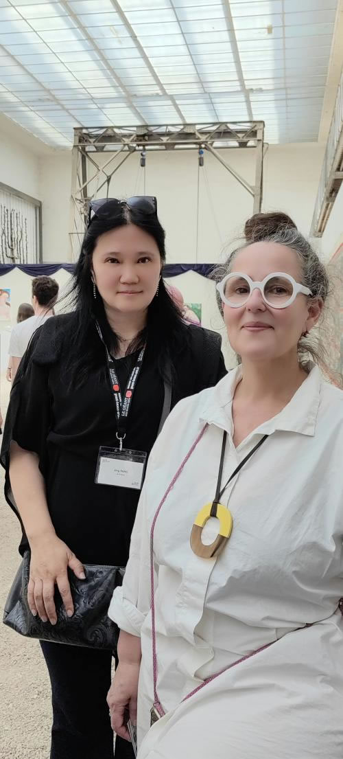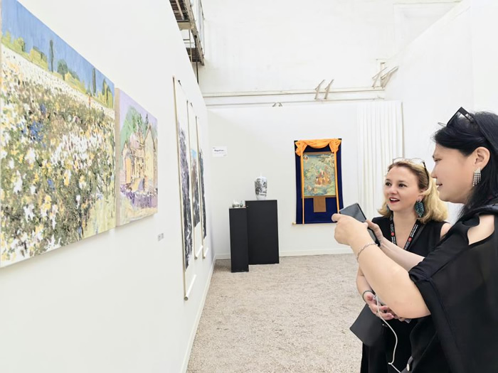 參展期間,楊靜與各國的參展藝術家們互動交流,探討藝術創作的相關內容。