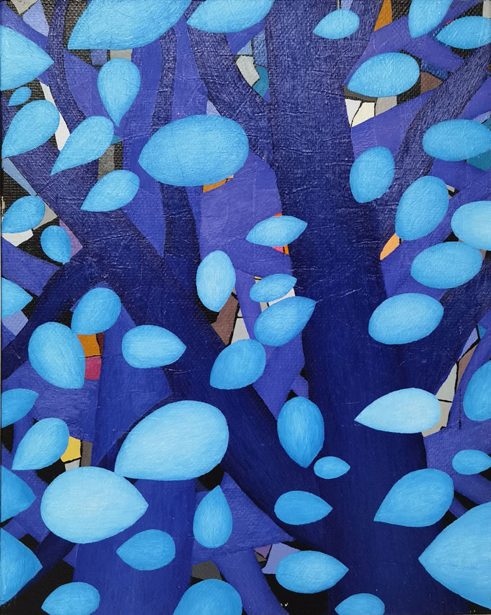 謝山的繪畫靈感來源于生活中的所見所感,來自家鄉的記憶。他喜歡畫家鄉的風景,喜歡畫樹林,也喜歡將自己看到的加上想象構思成畫面。謝山雖非科班出生,卻有著藝術家那份細膩和敏感,他的作品最動人之處洽是真誠。