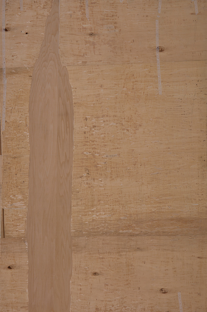 德國雕塑刀的“錯用”,讓我早期的木刻呈現了不一樣的表現形式,后期的創作增添了本是印刷的油墨滾子的使用,在板上的涂抹中,找到刻、板和油墨三者彼此互相融入的世界,而我敏感地意識到差異的意義,但是這只是開端,生活的領悟、大量書籍的閱讀,讓我看到了本是媒介的木板,同時是我共同生長的獨立個體,它不再只是展現“我”的媒介,更是它自身存在獨立性的印證。從“我”到“我和物質”再到“物質本身”,創作過程中“我的世界”不再執拗于創建一個不同他人的“我”,而是平等傾聽,誠懇勞作。木板不再是工具,而是目的本身。