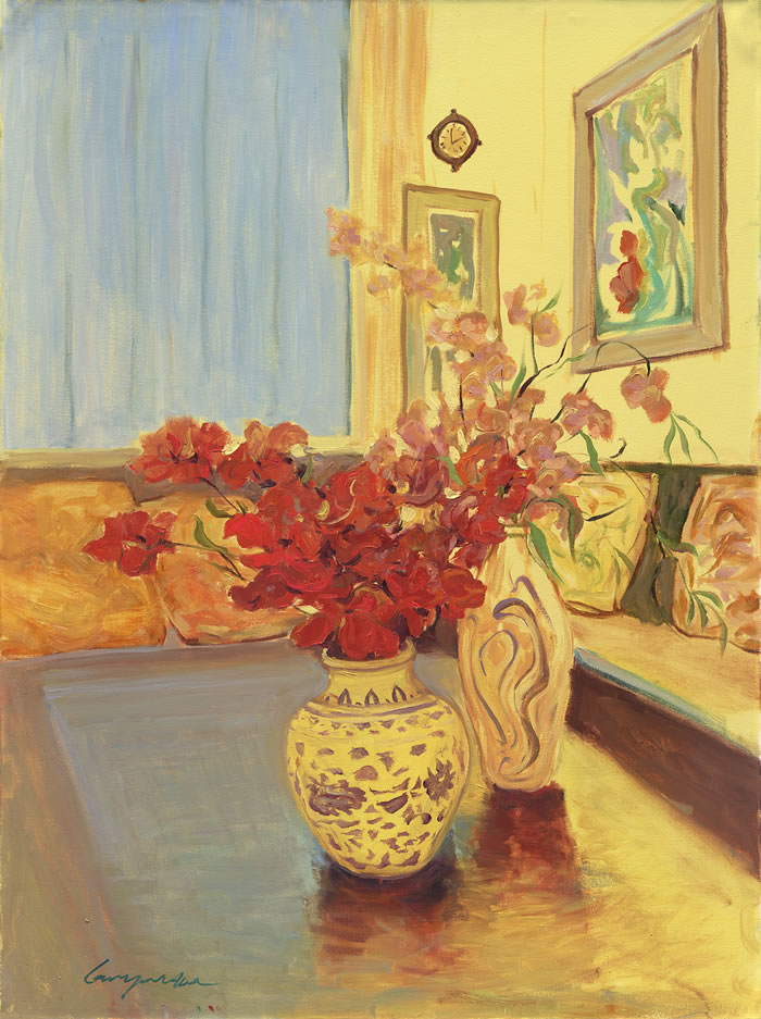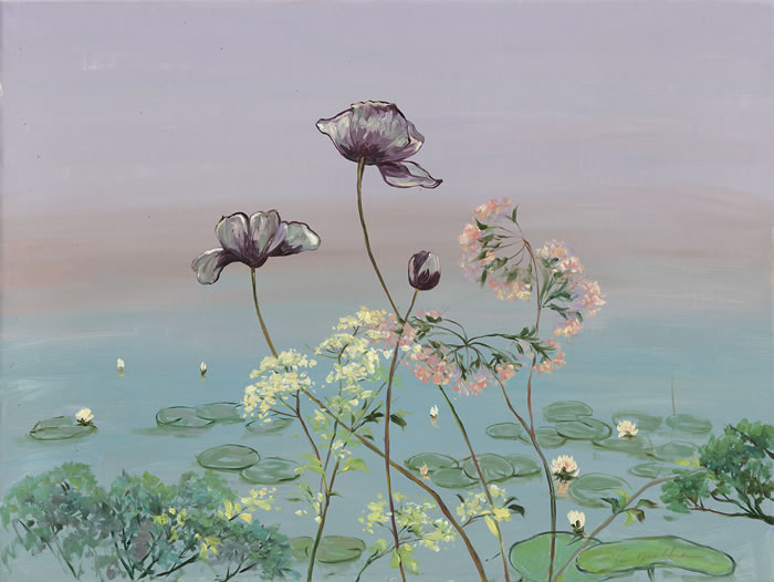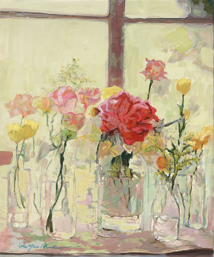 經過了半個世紀的風雨,人生如一艘航行中的船,它在驚濤駭浪中也好,風平浪靜中也好,我以各種面貌呈現在人前,忽然到了我八十四歲的時候,我回到了畫室,馳騁在畫布前,我在紐約重拾畫筆,拿起畫筆,我覺得時光穿越了,我成了大學生時代的女學生顧月華,忽然發現這么多年,我一生都在扮演著不同的角色,母親、妻子、女兒、姐妹及各種頭銜的女人,那個女人明明是我,但又不是真正的我,我坐在畫架前,我知道真正的我回來了,我的靈魂回到我的身體里,我現在是重生的自己,渴望回到故鄉,尋找回一個更完整的自己,于是有了這個畫展。
