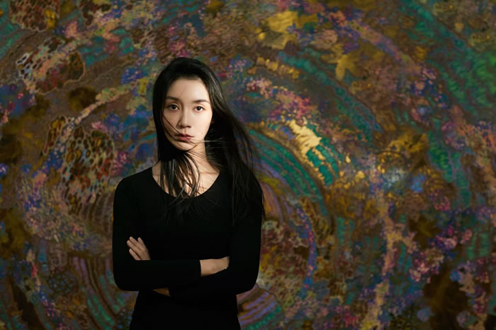 在新作中,姜淼以八卦、螺旋、漩渦、莫比烏斯環等抽象視覺符號作為靈魂的象征,將釋放能量的“色彩”作為主要的視覺效果,暗示其精神、靈魂和身體的真理;他們從無形中吸收能量,將精神能量和磁場釋放到真實世界中,將對未來文明的思考投射到如今過度物化的世界中。
