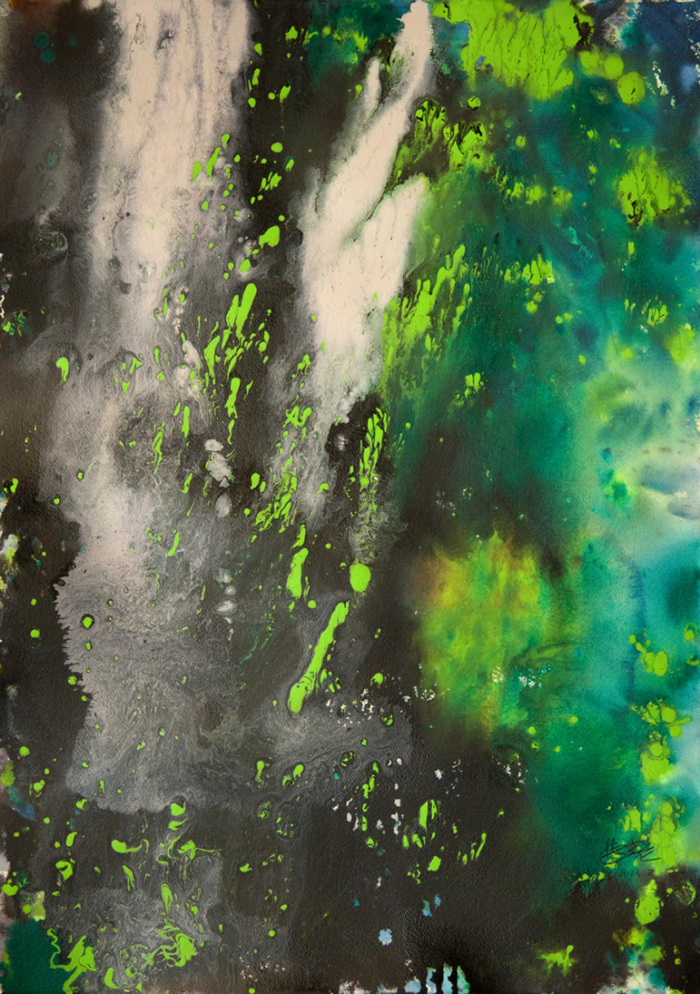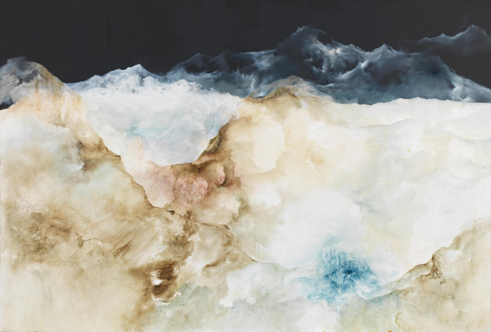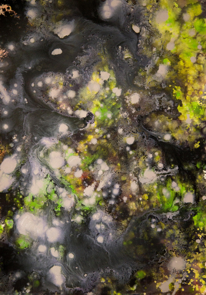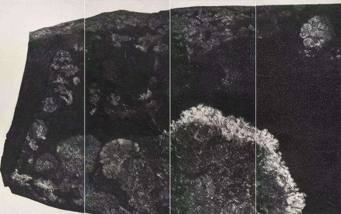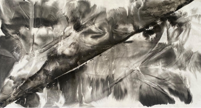 在中國文化中,水光山色,寓意深遠。水不止為水,也寄托藝術家之情懷。此外,藝術家的靈感不只來自他們的生活,也來自其內心和對自然世界的想象。對我而言,潮濕之地生出的天然紋理,讓我對自然充滿幻想和癡迷,而這些紋理變幻萬千,莫可名狀。我還發現一個有意思的事,當我長時間盯住一道紋理,我似乎可以看出動態與輪廓。所以我喜歡用柔軟的墨色,創造一個想象的空間,而不勾畫輪廓。在我眼里,我能感受到它們的色彩和形狀所具有的獨特美感。而且,所有這些紋理,都是自然的饋贈而非人工創造。我的作品受山水畫思維方式的影響,運用綜合感知,不僅用眼睛觀其形色,也嗅其味,聞其聲,還用心靈感受。在我的觀念里, 如何評判一幅畫是否再現一片美景,不在于畫中山川樹木是否惟妙惟肖,而在于畫面的整體意境。