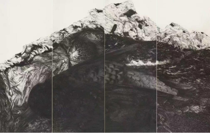 張蒙 :我的作品,其核心之一,是對中國傳統山水畫的再情景化和重新闡釋。我癡迷于山水畫的意境,欲尋求以現代方法表現東方美學的可能性。山水是在中國已有1500 多年創作經驗的一類繪畫,而今在中國藝術中有“新山水”之說。某些中國藝術家以山水為素材,以當代方式進行創作。 但我認為很多作品徒具形式,而觀念依舊。因此我要在傳統山水畫和當代藝術實踐 之間,把握一種平衡。天地自然是我一向鐘愛的主題,也是我堅持不輟加以利用的核心元素。它賦予我更多機會去探索 和表現它的神秘氣勢。我不僅喜歡高山聳峙、大河奔流的山水,我還喜歡自然中的小細節和紋理中生 發的萬千氣象。如在某些潮濕之地,墻上生出青苔霉菌,形態各異。我喜歡觀察角落里這些不易被人察覺的景致。