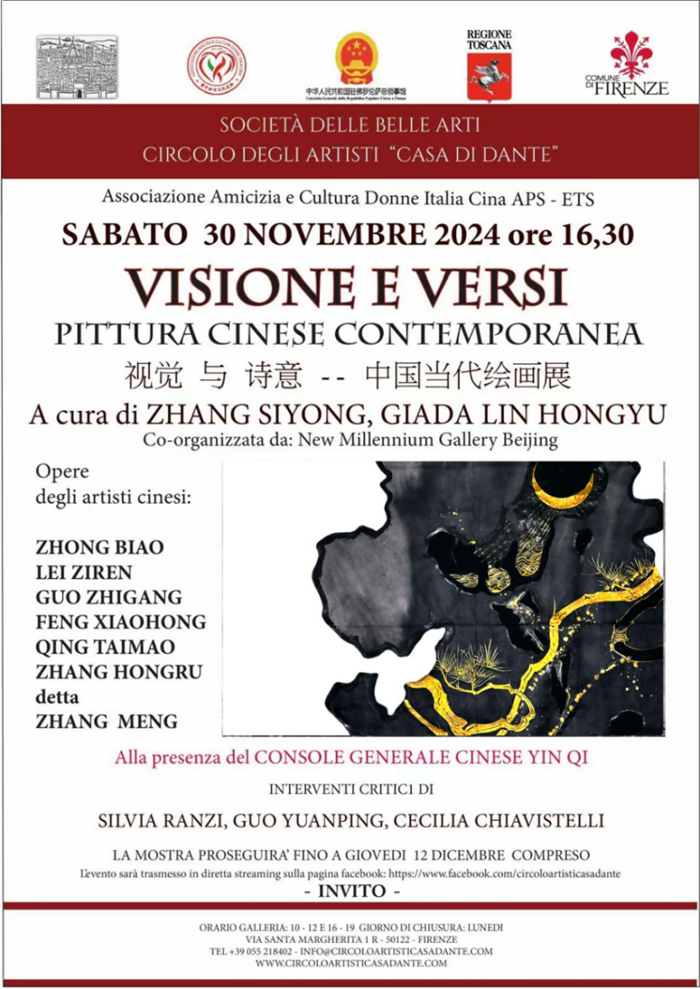 位于佛羅倫薩“但丁故居”藝術家協會藝術中心以促進國際文化交流為己任,我很高興為六位代表了中國當代藝術的藝術家舉辦展覽。這個展示空間180 多年以來一直是不同文化與不同藝術視角的相遇之地,這次舉辦新的大型展覽,其標題為《“視覺與詩意”》,實現了一個具有象征意義的交匯點:即在歷史性的場地與中國藝術家的創新之間,而且還在繪畫和詩歌之間。這次展覽完全符合我們協會的傳統,提供了一個難得的機會讓我們沉浸在中國當代藝術的宇宙中,探索繪畫與詩歌之間的深刻聯系,這種對話有著古老的根源,但在這里演變成現代的形式, 且令人驚訝。藝術家的展出作品刷新了中國繪畫的傳統,其視覺語言在詩意的抽象和親密的現實主義之間搖擺,揭示了當代中國藝術身份的復雜性。作品中顯示出中國傳統符號與當代藝術語言的交織,形成了一段穿越深厚的中國文化的旅程,并在全球化和高速技術發展的洗禮下的重新詮釋?!丁耙曈X與詩意”》中國當代藝術展是一個需要仔細觀察和深刻反思的展覽。藝術家將圖像和詩的意境融為一體的能力將觀眾帶入了一種內心的對話,并從作品的內涵中受到啟發,這次展覽不僅證明了當今中國藝術家的創作活力,也證明了東西方之間可持續的對話。選擇佛羅倫薩“但丁故居” 藝術家協會藝術中心作為本次展覽的舉辦場地, 強調了中意兩國希望相互交流、促進不同文化之間的理解與合作的價值。這個展覽不僅讓我們欣賞,反思, 而且也是通過藝術的通用語言與世界對話, 并從中獲得啟發的機會。我們邀請所有參觀者探索中國藝術的新領域,發現六位藝術家想要傳達的信息、符號和情感,他們沉浸在一種既植根于自己的傳統又開放的視野中, 邁向全球。在此,我非常感謝六位在我們的空間展出作品的藝術家以及策展人和參與這個展覽的組織和評論家的努力, 使得這次藝術的展示和文化交流得以成功。