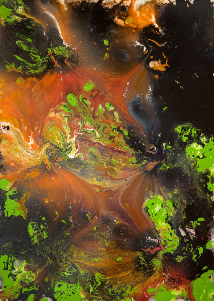 馮曉宏的繪畫力圖將色彩的情感化, 他想表現攝影與繪畫之間的關系。他的《萬象·浸》系列作品通過對色彩的純粹性本質的發掘來表現“廣”與“微”兩種視覺經驗,以色彩的融合、浸入、沖突、流變、等方式,表現出自由的、偶然的、隨機的創作狀態,在尋找作品新的語言邏輯的過程中,也獲得了藝術本體語言固有經驗之外的更多可能性和未知。同時,通過繪畫與觀者建立起情感上的聯系,引導觀者思考自己與周圍世界的關系,以及在這種關系中所體驗到的生命情感與情緒。