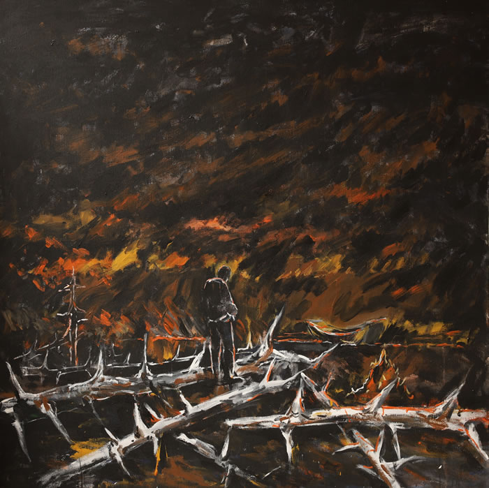 《灰燼大地》,160×160cm,布面丙烯,2023