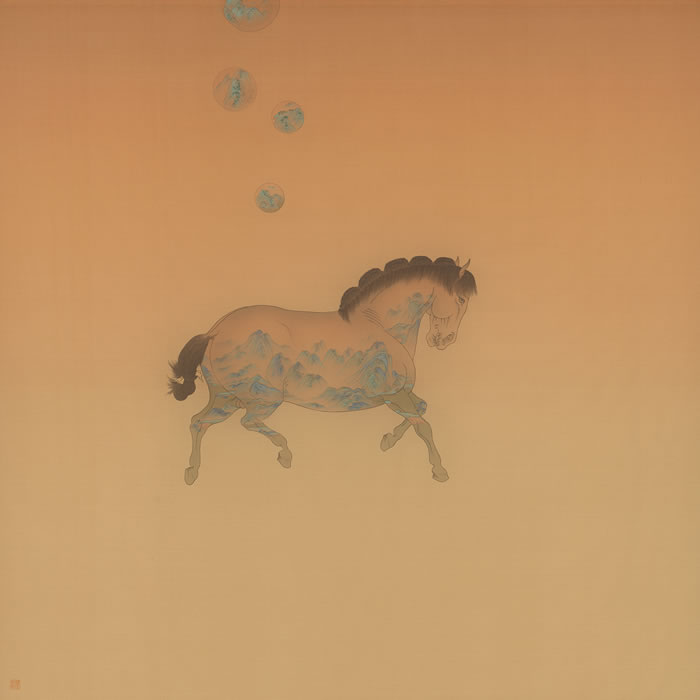詩意表達顯本真。唐宋青綠與唐詩宋詞,是中國優秀傳統文化的璀璨瑰寶,詩中有畫,畫中有詩,是中國畫重要的品評標準。隋宜航工筆畫藝術中的詩意表達雋永含蓄,她將自然景觀與人文情感相結合,詩意地展現了人與景、人與物的復雜而微妙的關系。她的青綠山水畫具有返古開今的生命力和感染力,鞍馬畫具有融古匯今的現代感與自主性。關照精神生活,重視精神追求,詩性的立意與詩意的詮釋,使她的作品具有沁人心脾的精神濃度。在她的作品中不難發現,詩意不僅是一種繪畫表達方式,更是一種生活態度和審美追求。