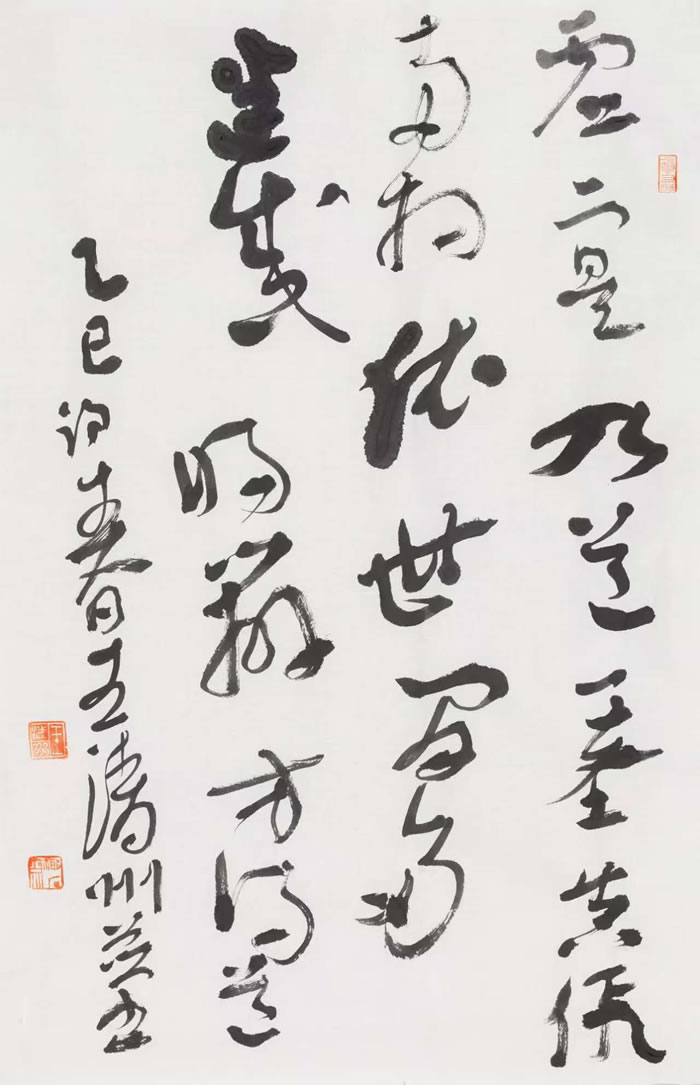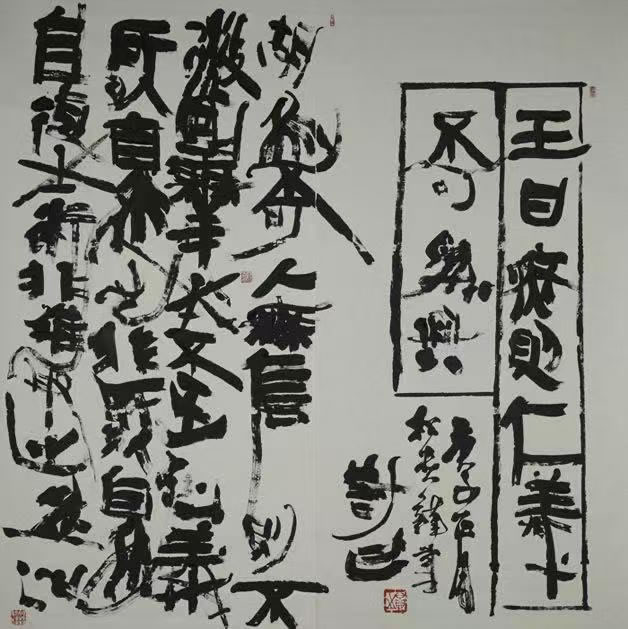 作為以中國傳統藝術為根基,融合中西繪畫精髓并大膽創新的當代藝術家,深諳傳統書法的筆墨精髓,卻以“破格”聞名。他融碑帖之骨、文人畫之境于一體、篆隸的蒼勁與行草的飄逸交織,似山巒起伏,又如江河奔涌。王清州的創作始終秉持“以書載道”的理念,在筆墨的收放間,傳遞對自然與人文的深沉眷戀。