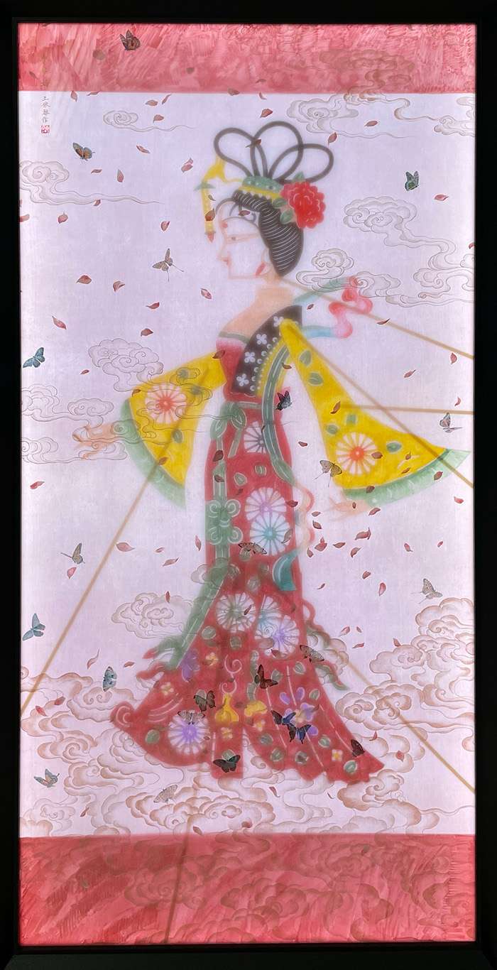 步步嬌 194cm×99cm 絹本水墨設色、變頻燈箱、皮影 2025